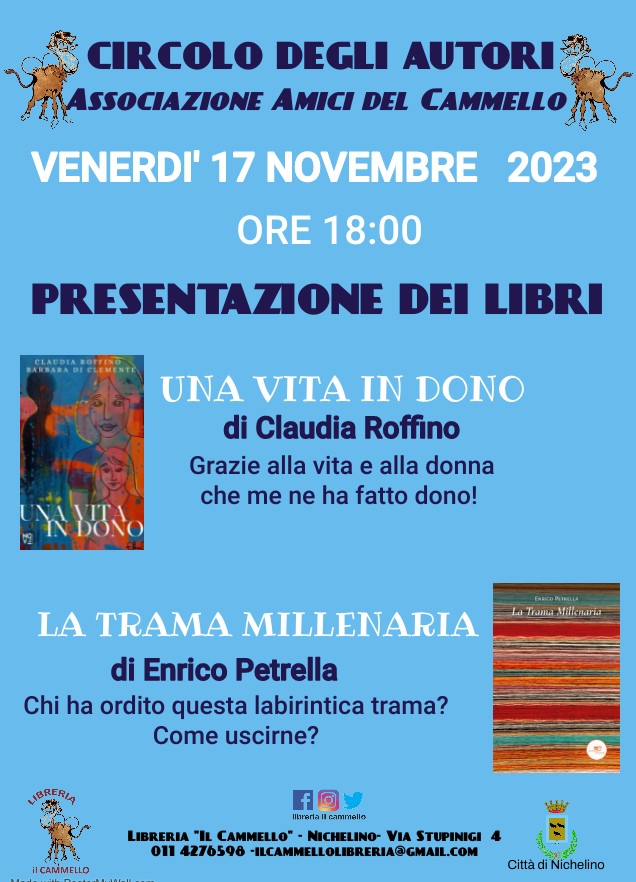 Venerdì 17 novrembre ore 18:00 presso la Libreria Il Cammello - Nichelino, Via Stupinigi 4