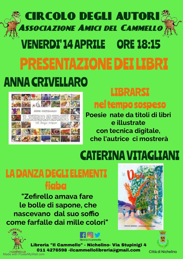 Venerdì 14 aprile alle ore 18:15 in Libreria a cura del Circolo degli Autori presentazione dei libri di Caterina Vitagliani e Anna Crivellaro: