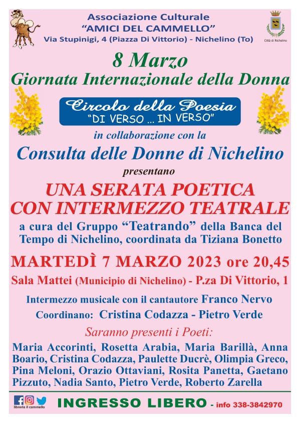 Serata poetica con intermezzo teatrale a cura del Gruppo “Teatrando” della Banca del Tempo di Nichelino - Ingresso libero