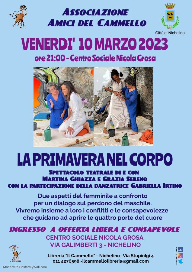 LA PRIMAVERA NEL CORPO, spettacolo teatrale di e con Martina Ghiazza e Grazia Sereno con la partecipazione della danzatrice Gabriella Irtino - Ingresso a offerta libera