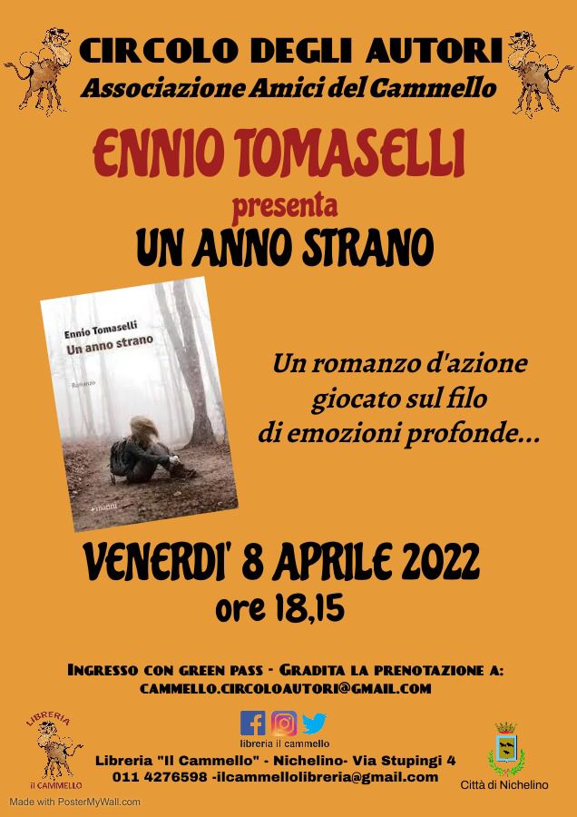 Venerdì 8 aprile alle ore 18:15 presso la Libreria Il Cammello, Via Stupinigi, 4 - Nichelino;