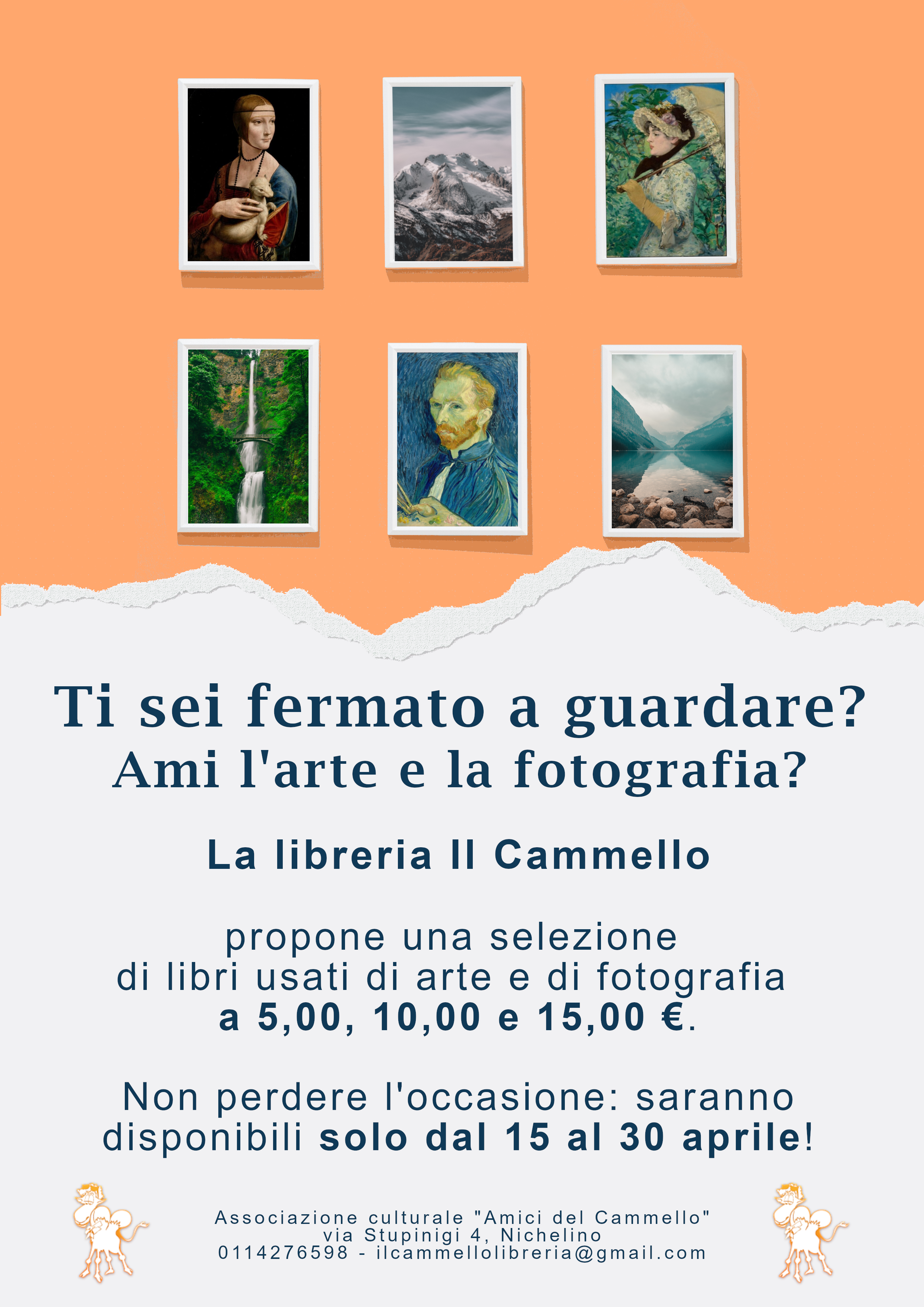 Al piano inferiore della Libreria Il Cammello, via Stupinigi 4 – Nichelino, dal lunedì al sabato secondo i consueti orario di apertura.