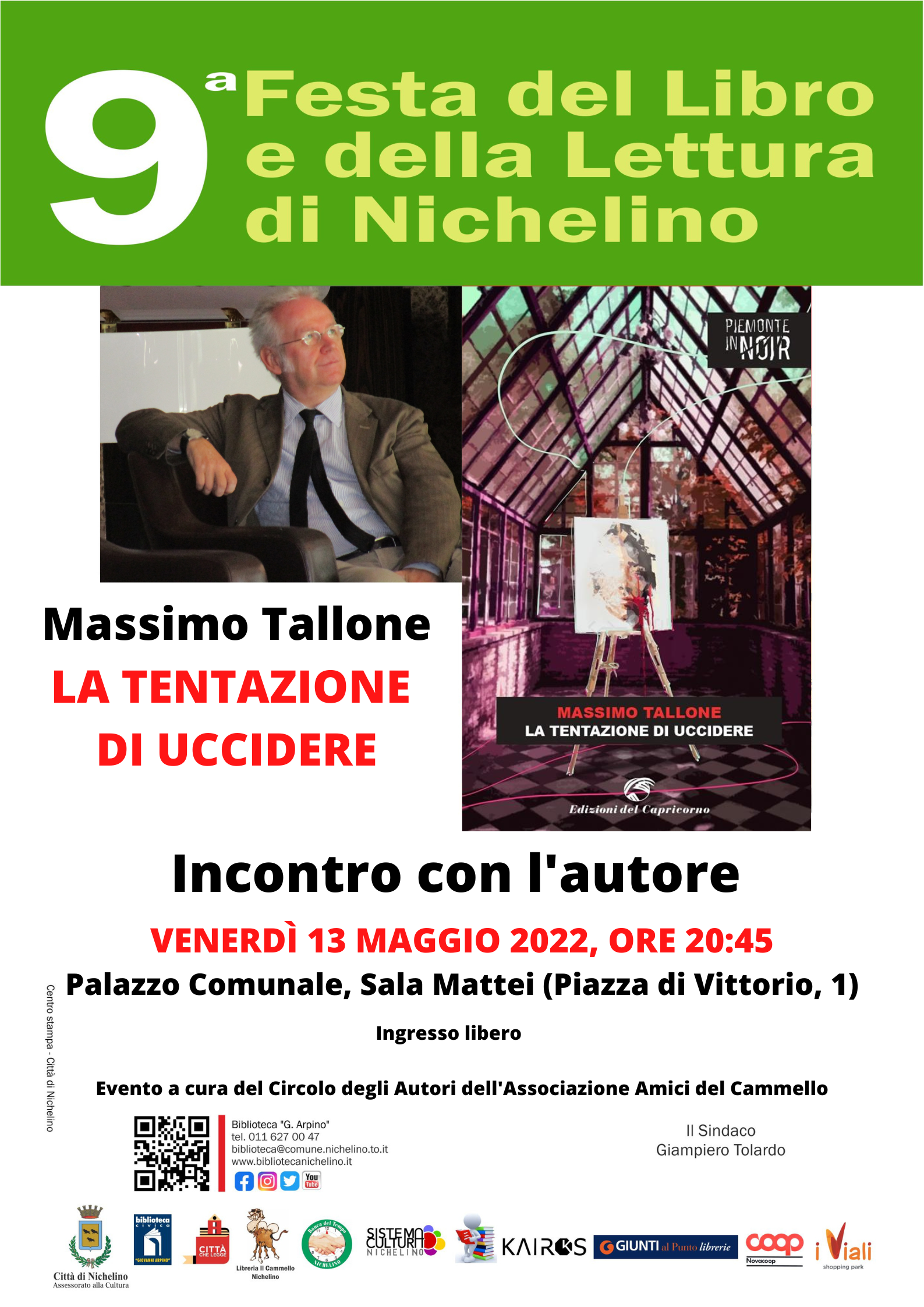 Venerdì 13 maggio alle ore 20:45 presso la Sala Mattei del Municipio di Nichelino un nuovo appuntamento della Festa del Libro della Città di Nichelino.