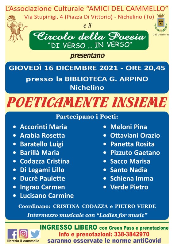 Ingresso con green pass, è gradita la prenotazione (email: cammello.circoloautori@gmail.com).