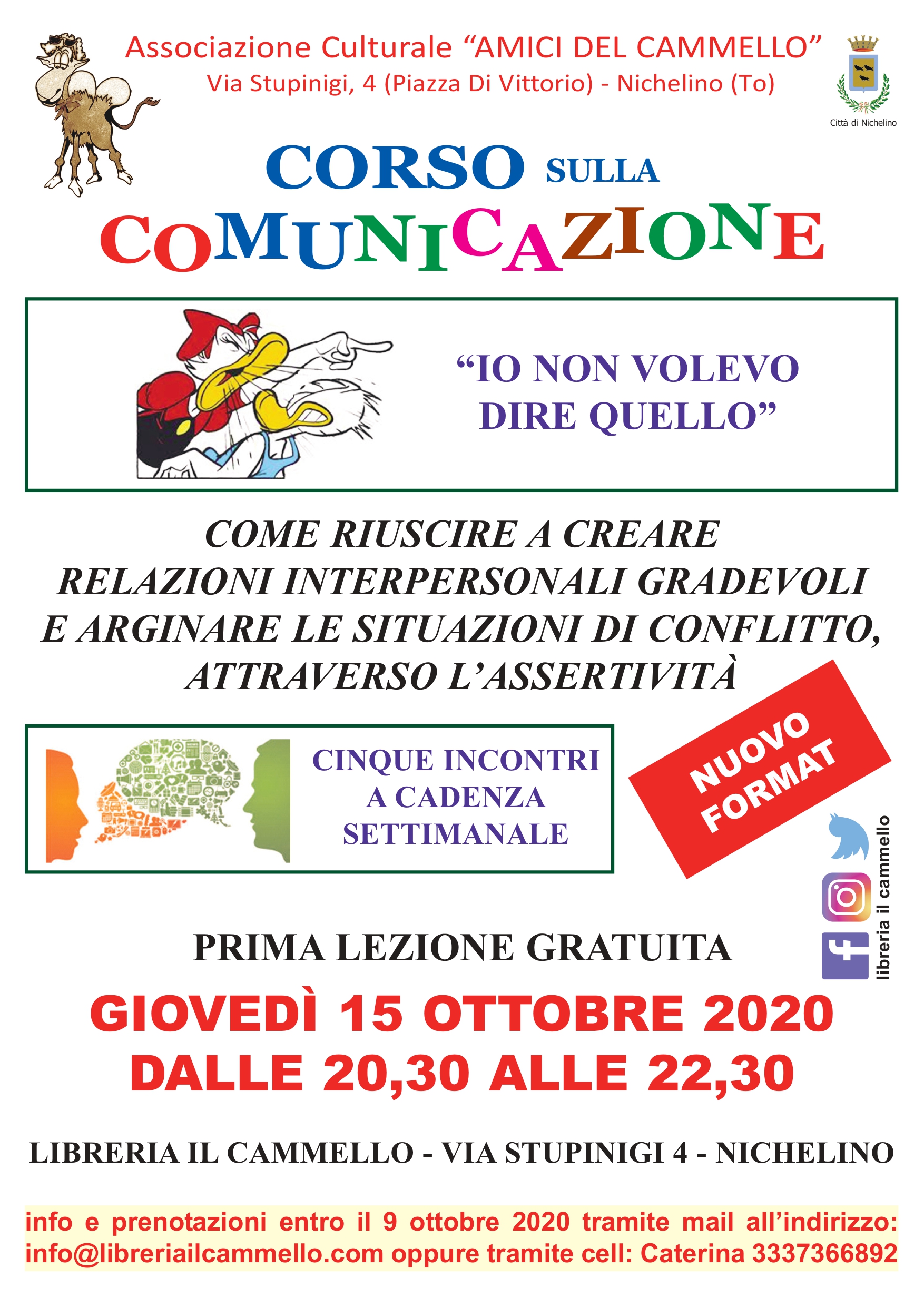L’Associazione Amici del Cammello ripropone un Corso base di comunicazione tenuto da Caterina Vitagliani, numerose sono state le edizione precedenti e hanno ottenuto un buon successo.