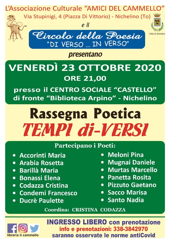 Il Circolo della Poesia "di verso...in verso" dell'Associazione organizza venerdì 23 alle ore 21:00 presso i locali del Comitato di Quartiere Castello una rassegna poetica.