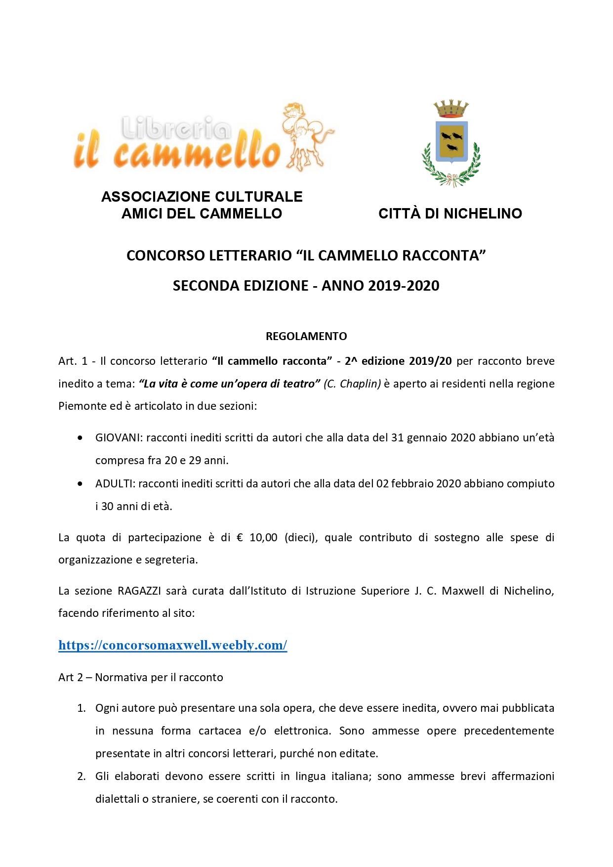 2° Concorso letterario "Il Cammello racconta" - Regolamento (pag.1)