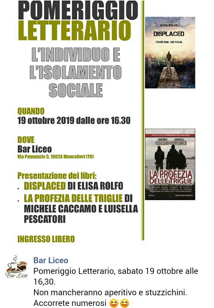 Pomeriggio Letterario presso Bar Liceo Moncalieri- via Pannunzio 5, ore 16:30.