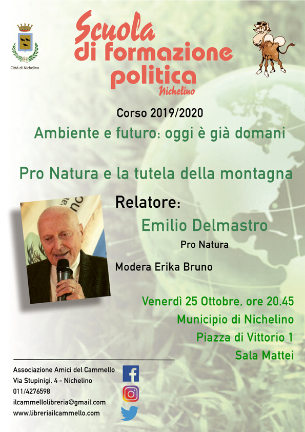 Questa sera, Venerdì 25 ottobre, alle ore 20.45 presso la Libreria Il Cammello (e non in Municipio come erroneamente indicato sulla locandina) sarà nostro ospite Emilio Delmastro della Federazione Nazionale Pro Natura per la Seconda serata della Scuola di Formazione Politica sul tema dell'Ambiente!