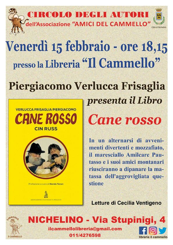 Il Circolo degli Autori presenta "Cane rosso" dell'autore Piergiacomo Verlucca Frisaglia. Vi aspettiamo Venerdì 15 Febbraio ore 18:15 in Libreria!!!