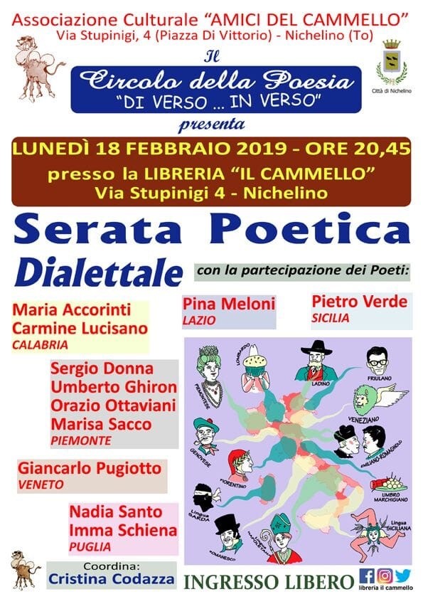 Serata poetica dialettale a cura del Circolo della Poesia Lunedì 18 alle ore 20:45. Un viaggio tra le regioni del nostro bel paese attraverso le poesie dialettali.