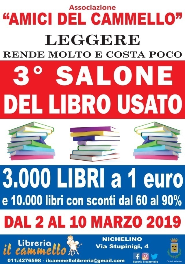 Dal 2 al 10 marzo verrà allestito nel salone al piano inferiore uno spazio espositivo con più di 3000 libri usati, in ottime condizioni, al prezzo speciale di 1€. Inoltre ci saranno negli scaffali 10000 libri usati di qualità con prezzi scontati dal 60% al 90% (rispetto al prezzo iniziale di copertina).