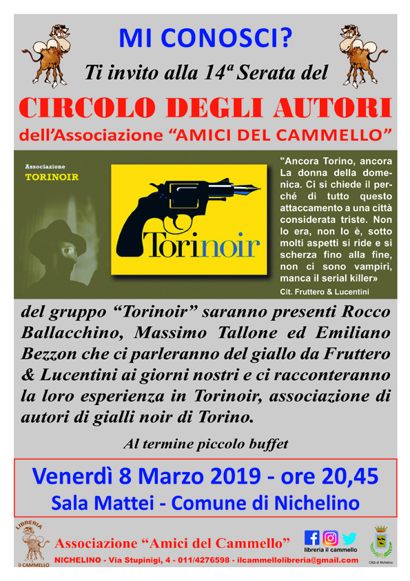 Presso Sala Mattei – Municipio di Nichelino ore 20:45 a cura del Circolo degli Autori, serata con gli scrittori di Torinoir.