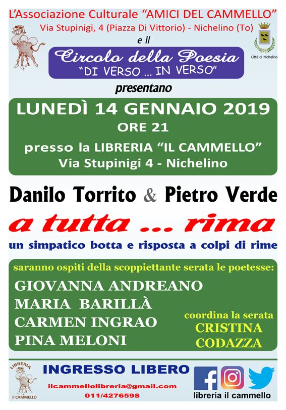 Lunedì 14 Gennaio Danilo Torrito e Pietro Verde si cimenteranno in un simpatico botta e risposta a colpi di rime e versi.