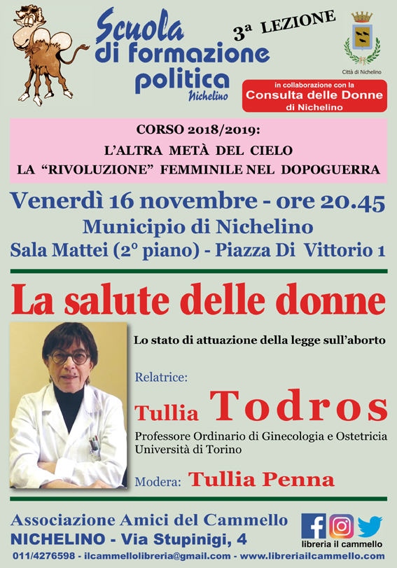 "La salute delle donne" ed in particolare lo stato della legge sull'aborto sarà il focus della 3° lezione della scuola di formazione politica. Relatrice Tullia Todros. Vi Aspettiamo Venerdì 16 Novembre alle ore 20:45 presso la Sala Mattei.
