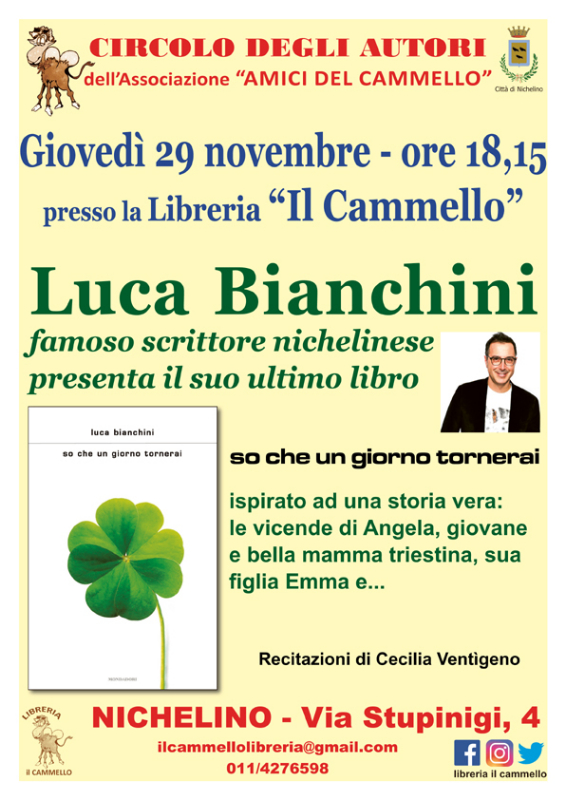 Luca Bianchini scrittore nichelinese ormai famoso in tutta Italia, presenterà il suo ultimo romanzo "So che un giorno tornerai".